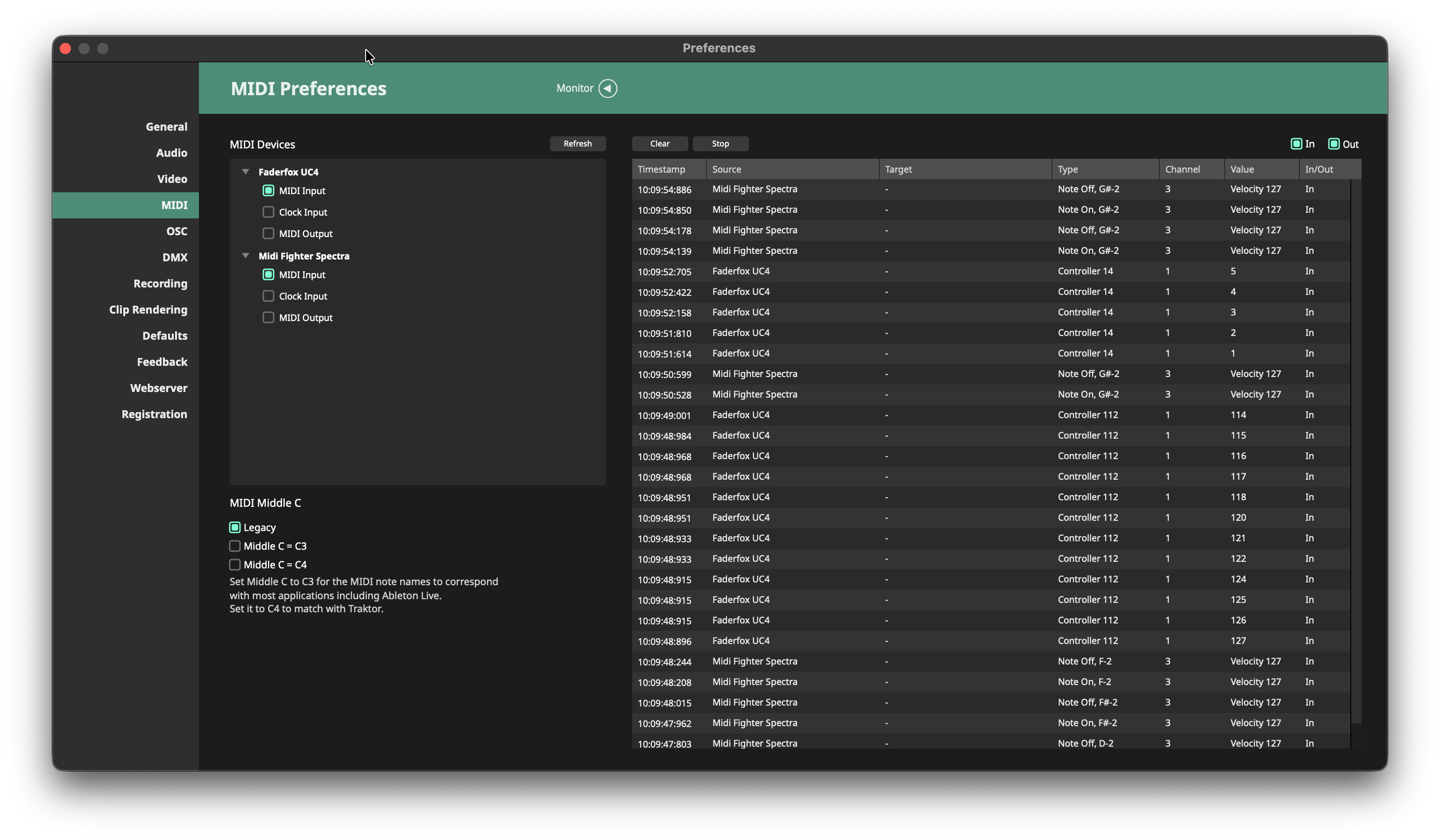 有时您会收到大量的 MIDI 或 OSC 信息。